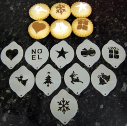 They are made out of much thinner material than our normal coffee stencils which means that they are much more flexible. This allows them to bend around curved cup cakes or mince pies much more easily.