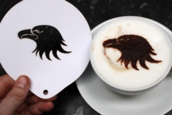 These coffee stencils are made from Food Safe (FDA approved) plastic material.  They are 1mm thick and can be used hundreds of times.