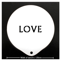 The dimensions of these commercial coffee stencils are approximately 120mm wide and 130 long (including the handle)
